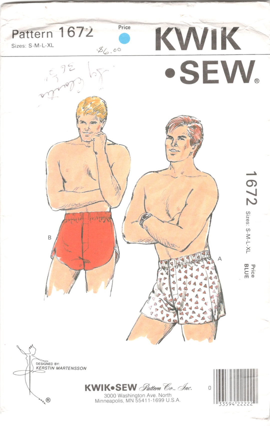 Kwik Sew 1672 Boxer Shorts Pattern Fly Front Opening Mens Etsy Canada